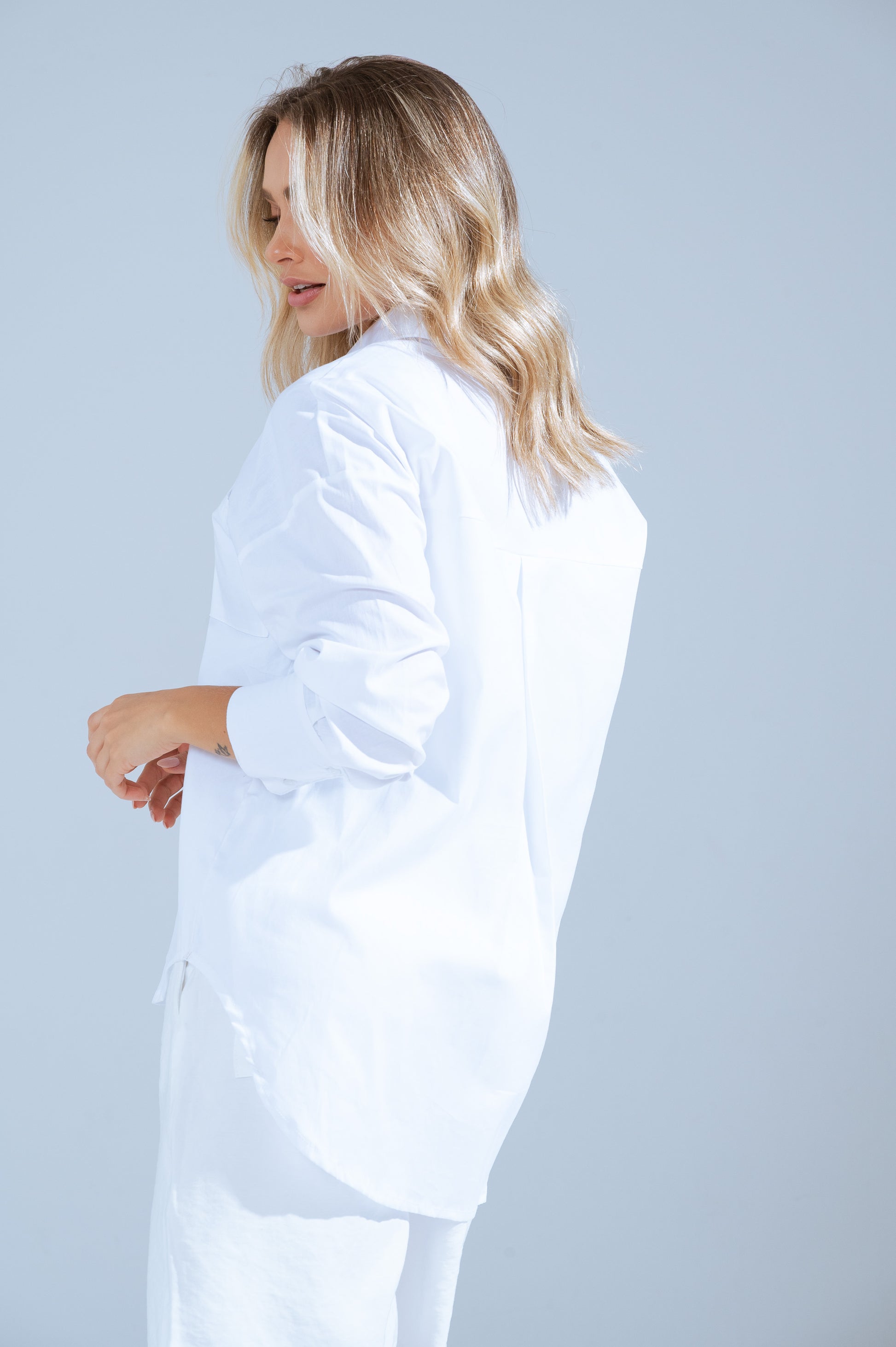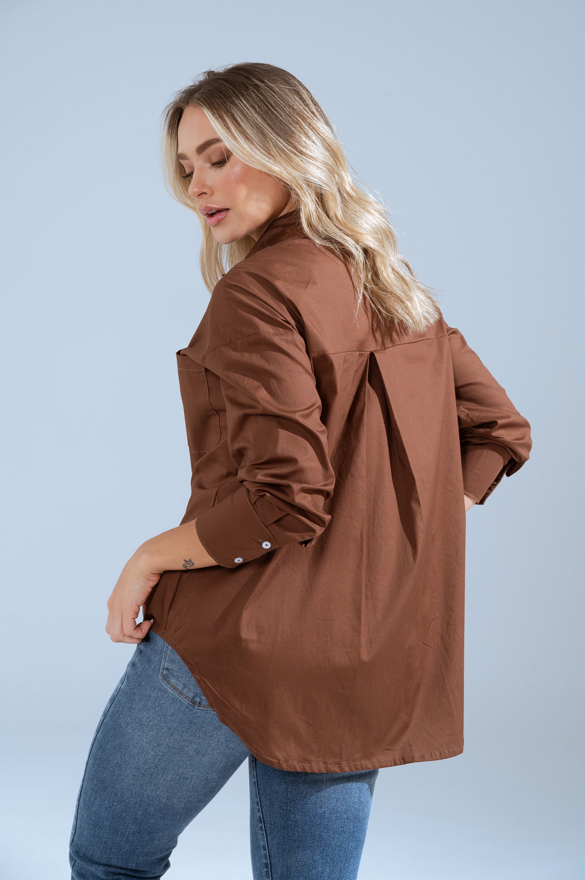 Una prenda versátil y atemporal que eleva cualquier outfit. Su diseño de silueta relajada, cuello clásico y botones frontales la convierten en el básico perfecto para looks casuales o más elegantes. Ideal para usar sola, abierta sobre top o como sobrecamisa.
