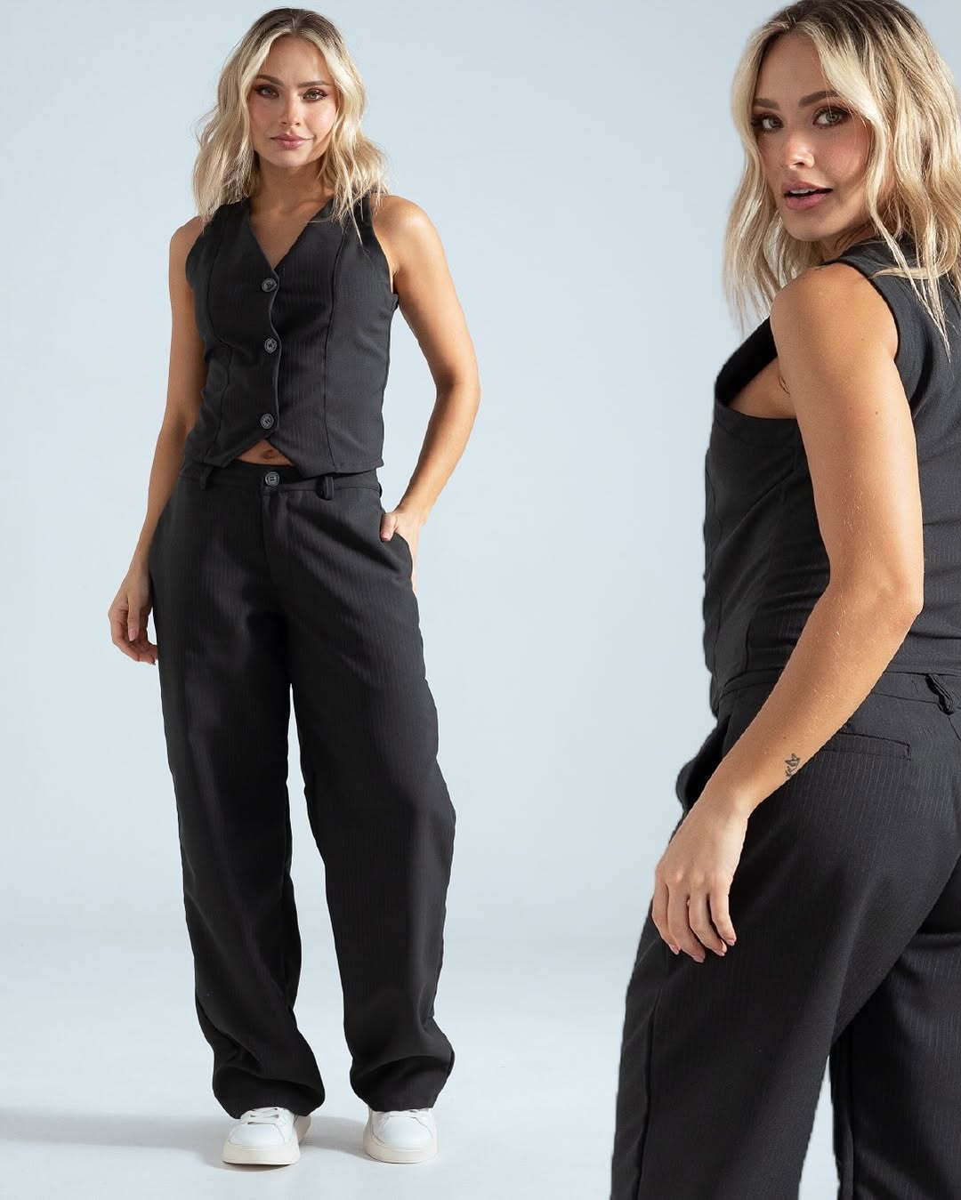 Conjunto de chaleco y pantalón en tono gris, moderno, cómodo y fácil de combinar. Ideal para lograr un look elegante sin esfuerzo 🖤✨