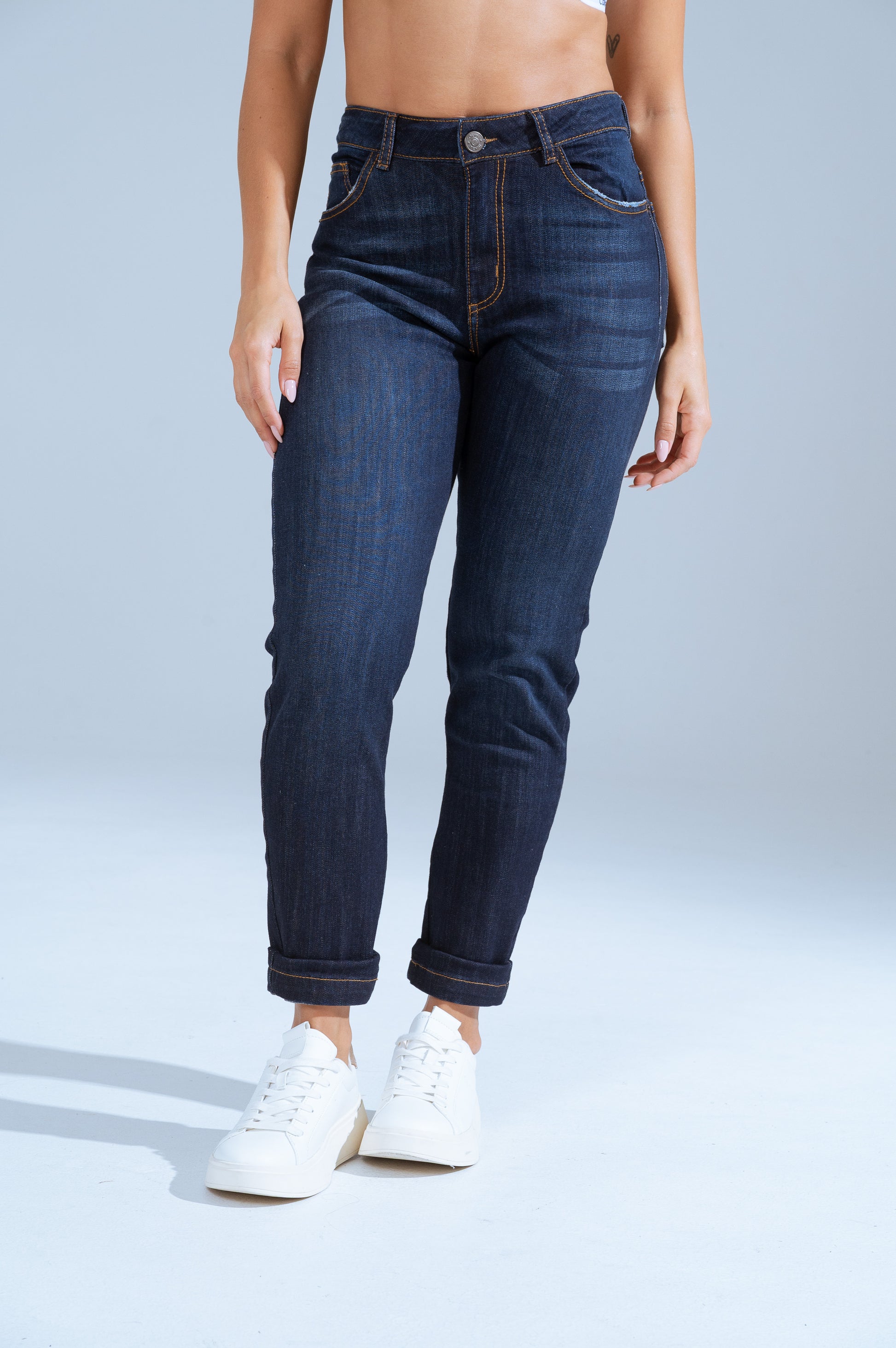 El fit perfecto que combina estilo y comodidad. Estos jeans de tiro medio/alto se ajustan suavemente a tu figura y estilizan tus piernas, ideales para looks casuales o más arreglados. Disponibles en Azul01 (oscuro intenso), Azul02 (azul clásico) y Negro (elegante y versátil).